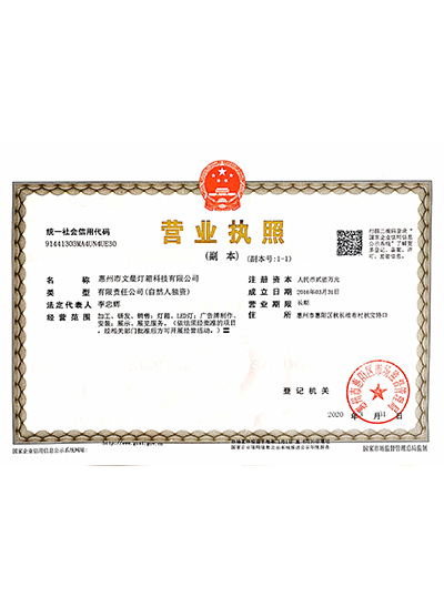 惠州市文晨燈箱科技有限公司,創建于2012年4月,坐落在惠州市惠陽區美麗的歷史文化名鎮秋長鎮,毗鄰革命先烈葉挺將軍故居。惠州市文晨燈箱科技有限公司創建以來,一直秉著客戶至上!品質為先!服務為重的經營理念。嚴格要求自我!以客戶的標準不斷完善產品的質量,追求更好的服務客戶...[了解更多]